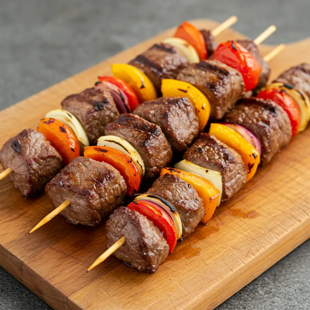 Deliciosos espetinhos de carne bovina grelhados, intercalados com tomate, cebola e pimentões coloridos. Uma receita simples e saborosa, perfeita para um almoço ou jantar informal.