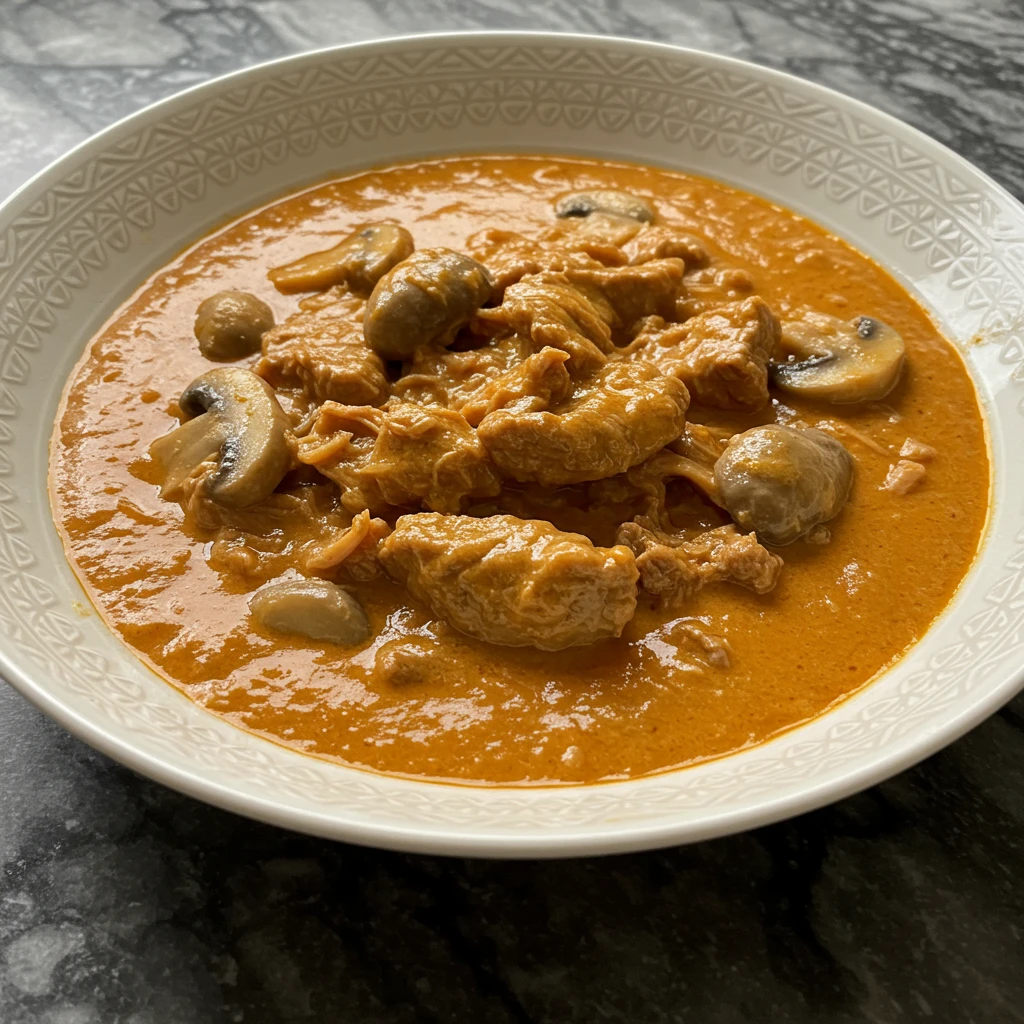 Um estrogonofe cremoso e saboroso, feito com coxão mole macio e ingredientes frescos. Perfeito para um jantar especial ou uma refeição aconchegante em família, acompanhado de arroz branco e batata palha.