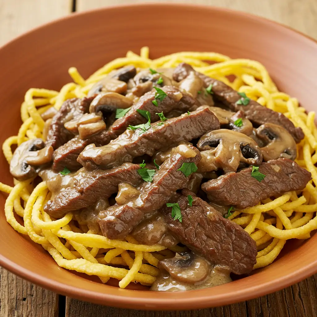 Estrogonofe de Filé Mignon com Cogumelos ao Molho Tailandês