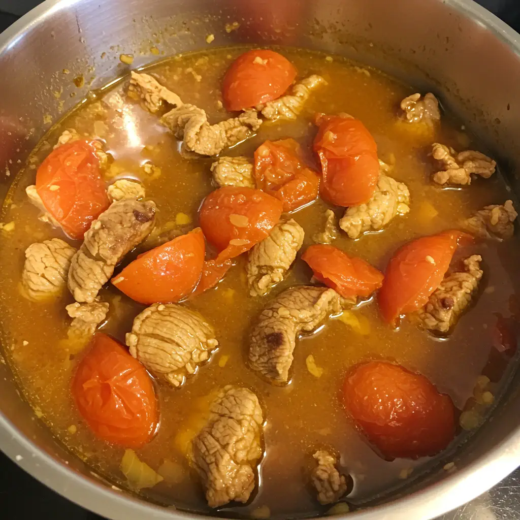 Adicione a carne e a calabresa, mexendo até dourar.