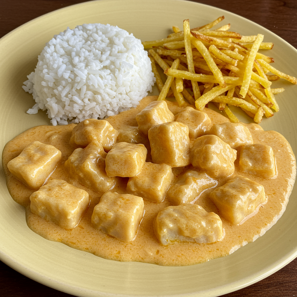 Um estrogonofe cremoso e vegetariano, com o sabor delicado do palmito e a textura do tofu. Uma opção leve e saborosa para um jantar especial ou um almoço diferente.