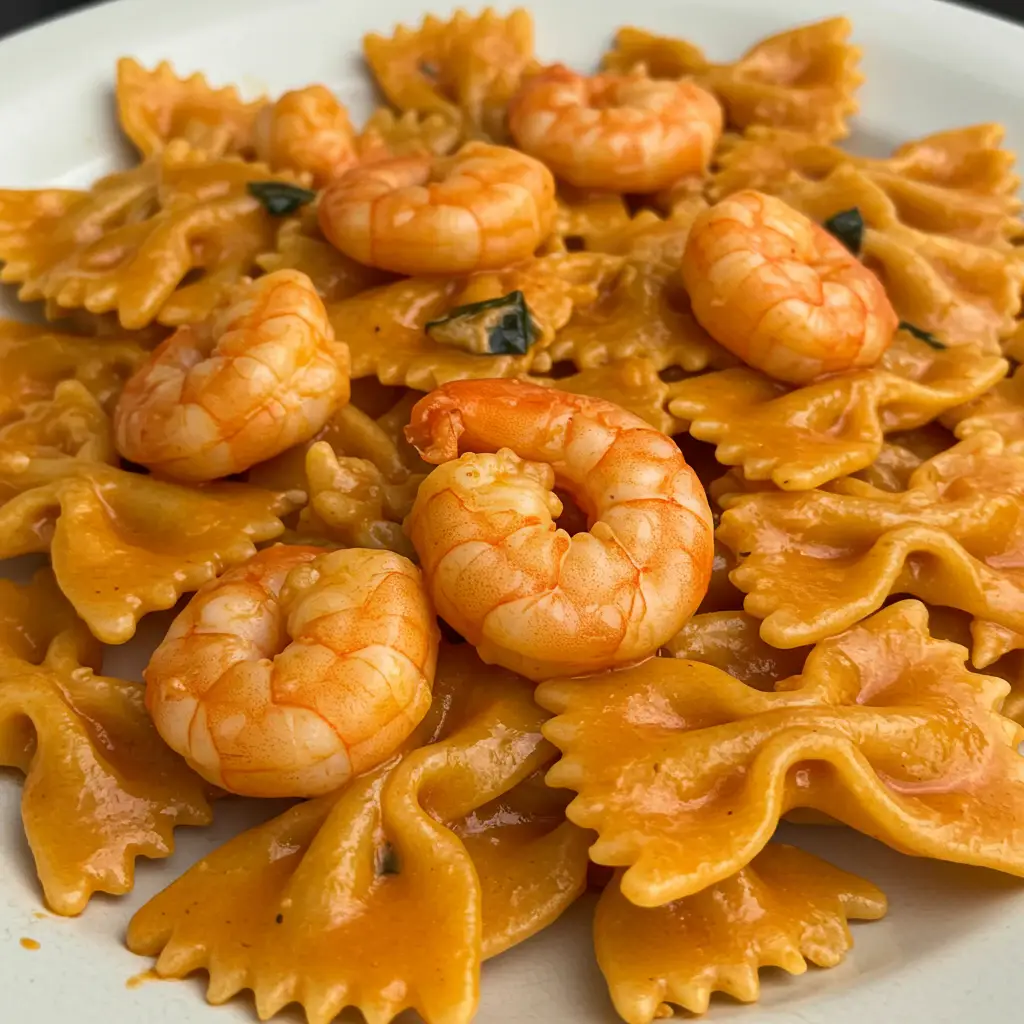 Farfalle com Camarões ao Molho de Tomate e Roquefort