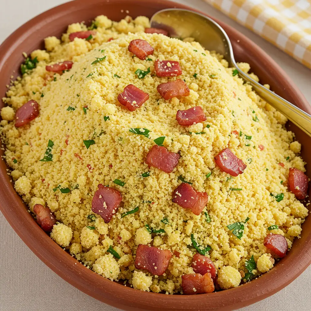 Uma farofa brasileira clássica, com bacon crocante e ovos cozidos, perfeita para acompanhar carnes e aves. Simples, saborosa e irresistível! Ideal para um almoço em família.