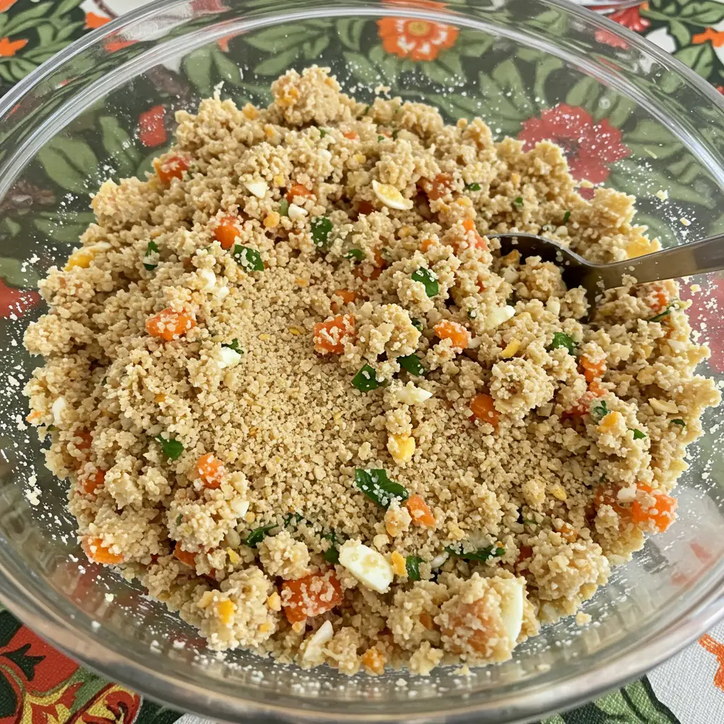 Uma farofa crua deliciosa e prática, perfeita para acompanhar churrascos e carnes assadas. Cheia de sabor e textura, com ingredientes frescos e vibrantes. Ideal para um almoço ou jantar informal.