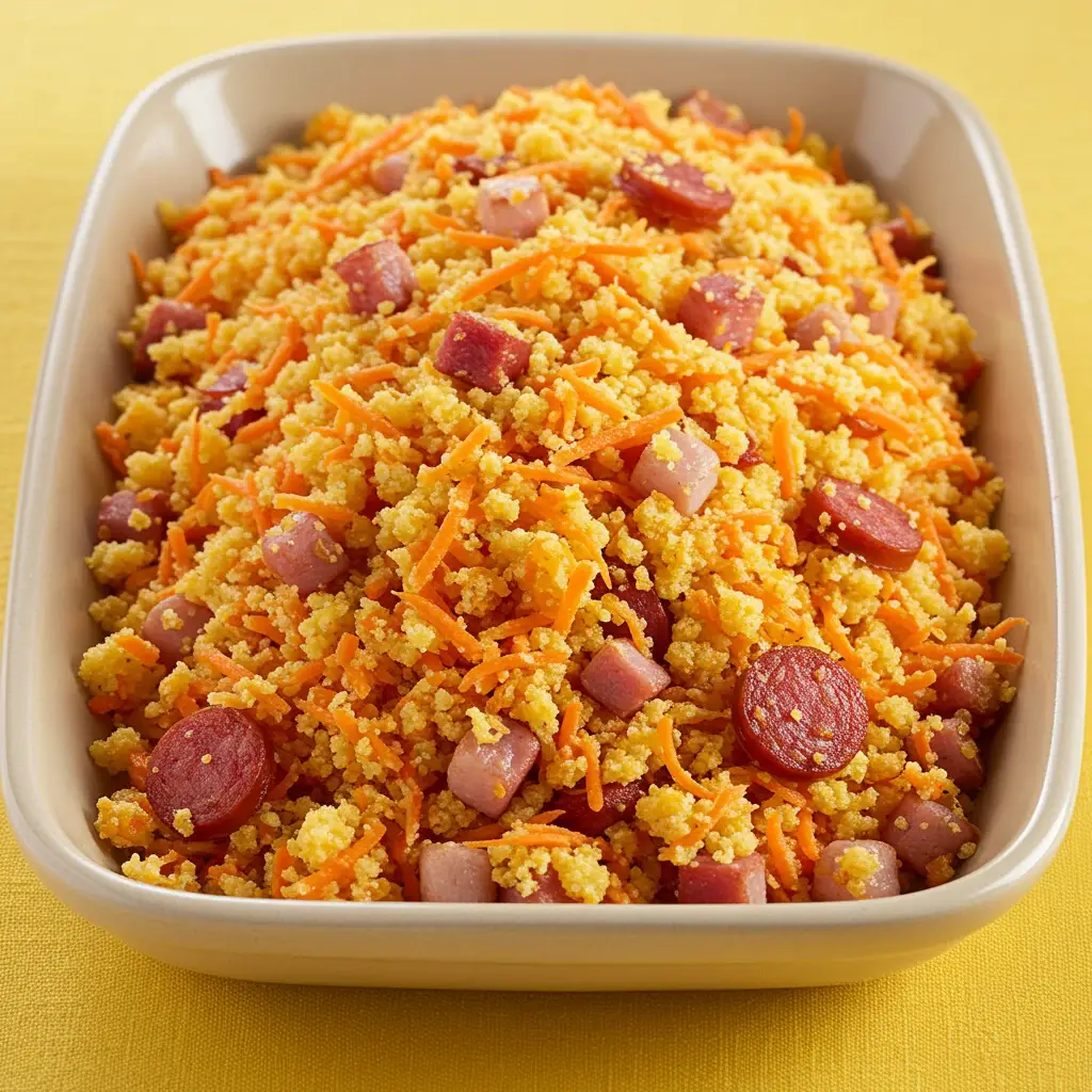 Uma farofa cremosa e saborosa, com o toque defumado do bacon e linguiça, e o frescor da cenoura ralada. Perfeita para acompanhar carnes grelhadas ou um bom feijão tropeiro. Uma receita simples e deliciosa para o seu dia a dia!