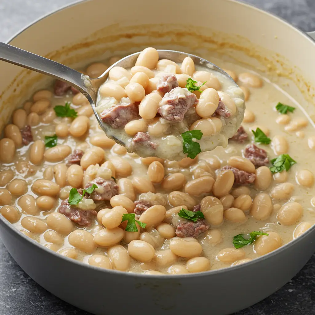 Um saboroso feijão carioca, cozido na pressão e enriquecido com o sabor defumado do charque, o toque levemente amargo da chicória e o frescor do cheiro-verde. Uma receita tradicional brasileira reconfortante e cheia de sabor!
