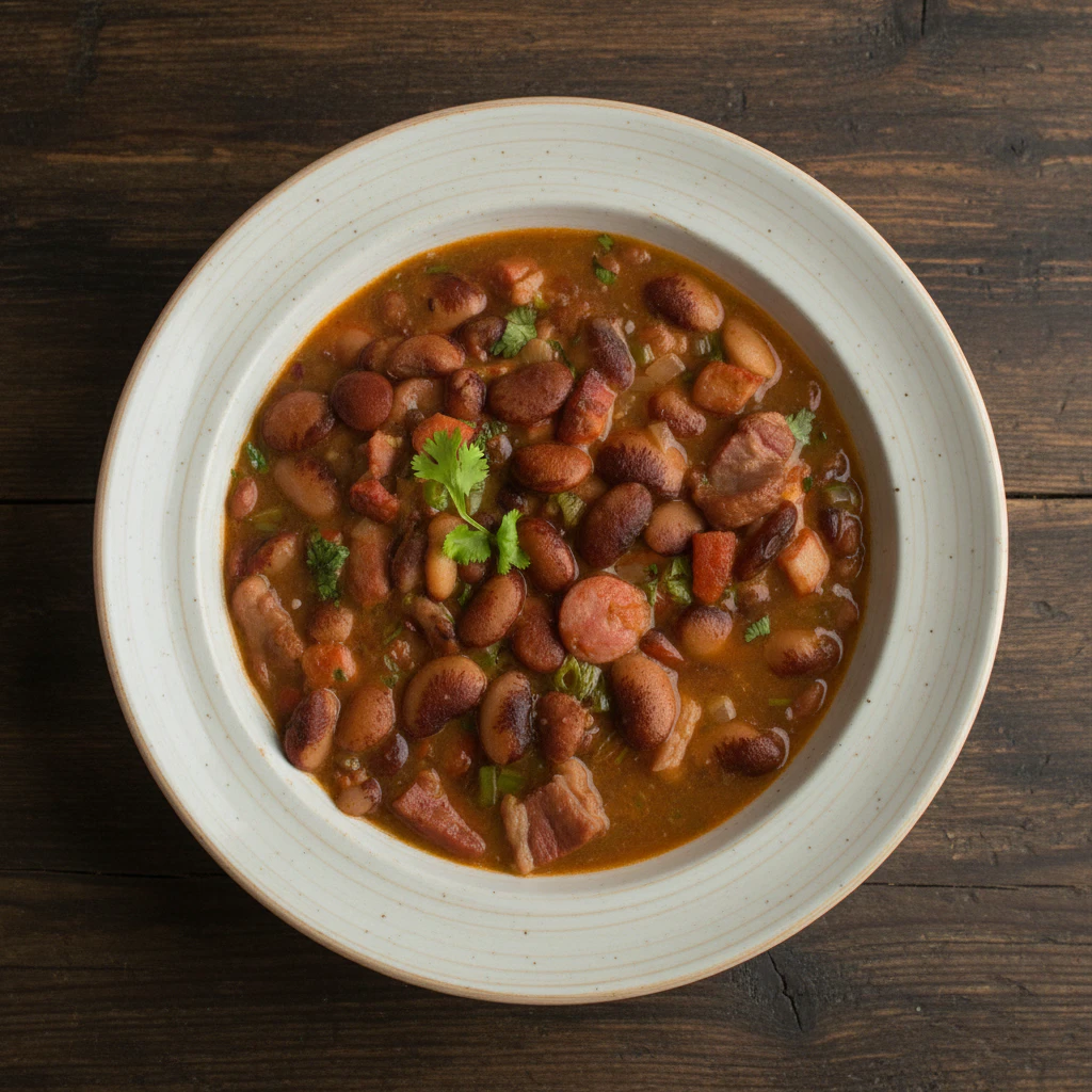 Um prato brasileiro cheio de sabor! Feijão fava cremoso cozido lentamente, combinado com a defumada calabresa, o salgado da carne de sol e o toque especial da manteiga de garrafa. Uma refeição reconfortante e perfeita para um dia frio.