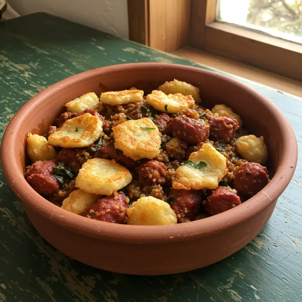 Um clássico da culinária brasileira, o Feijão Tropeiro Tradicional encanta com seu sabor inconfundível. Feijão roxinho macio, combinado com o sabor defumado do toucinho e o toque crocante da farinha, resulta em um prato delicioso e reconfortante.