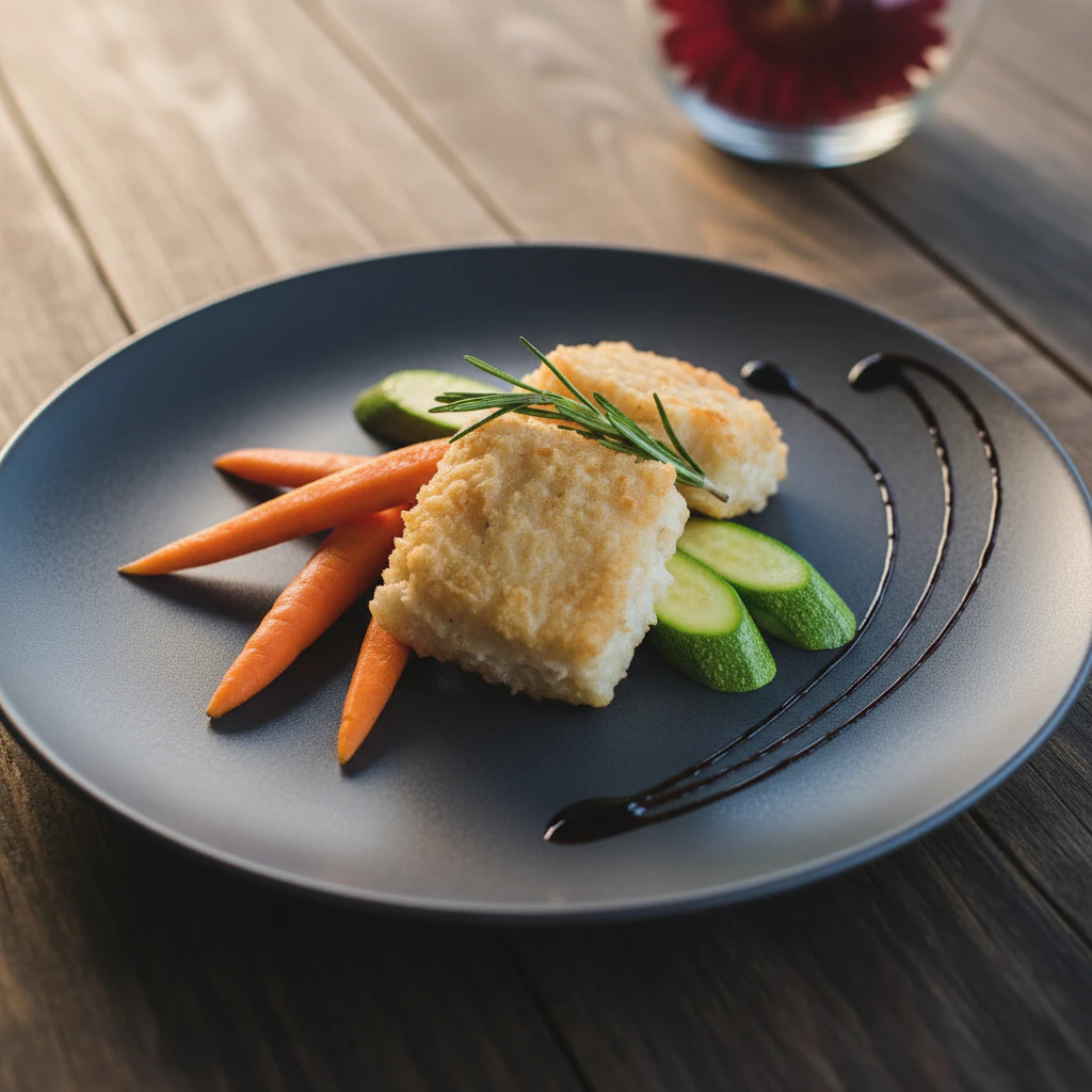 Delicioso filé de abadejo grelhado, acompanhado de legumes frescos salteados na manteiga. Uma combinação leve e saborosa, perfeita para um jantar especial.