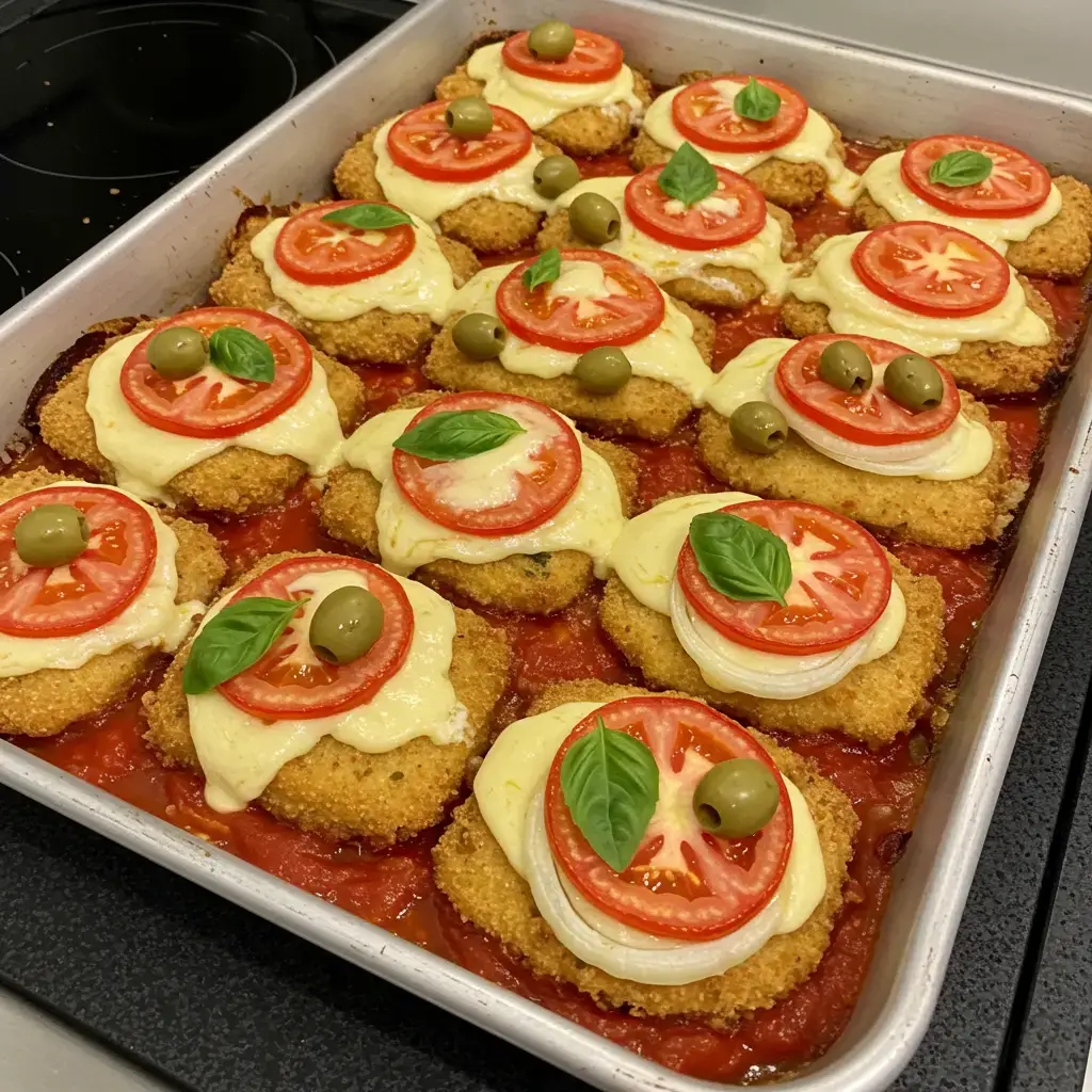 Clássico filé de frango à parmegiana, crocante e saboroso, coberto com mussarela derretida e um toque de tomate fresco. Uma receita simples e deliciosa para o dia a dia.