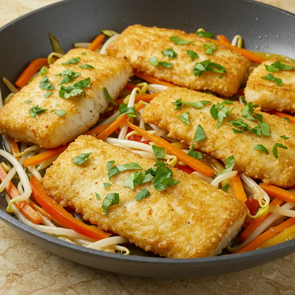 Delicioso filé de mapará grelhado, acompanhado de brotos de feijão salteados e um molho levemente apimentado com gengibre e limão. Uma opção leve e saborosa da culinária brasileira.