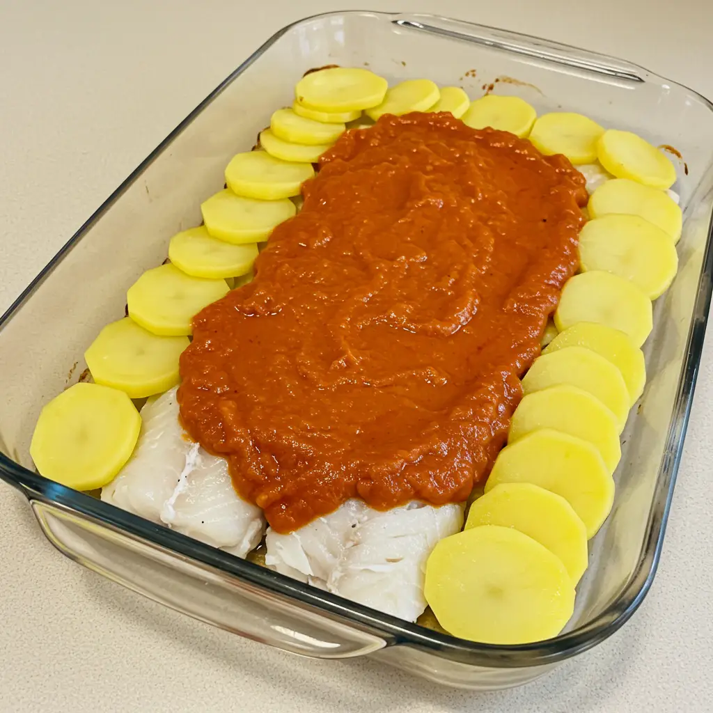 Delicioso filé de merluza coberto por um cremoso molho rosê, gratinado com mussarela e finalizado com batatas cozidas. Uma opção leve e saborosa para um jantar especial.