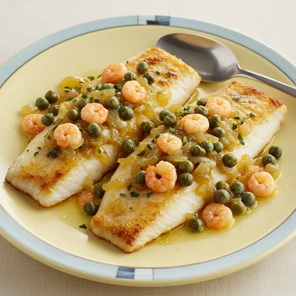Filé de Peixe ao Molho de Alcaparras e Camarão