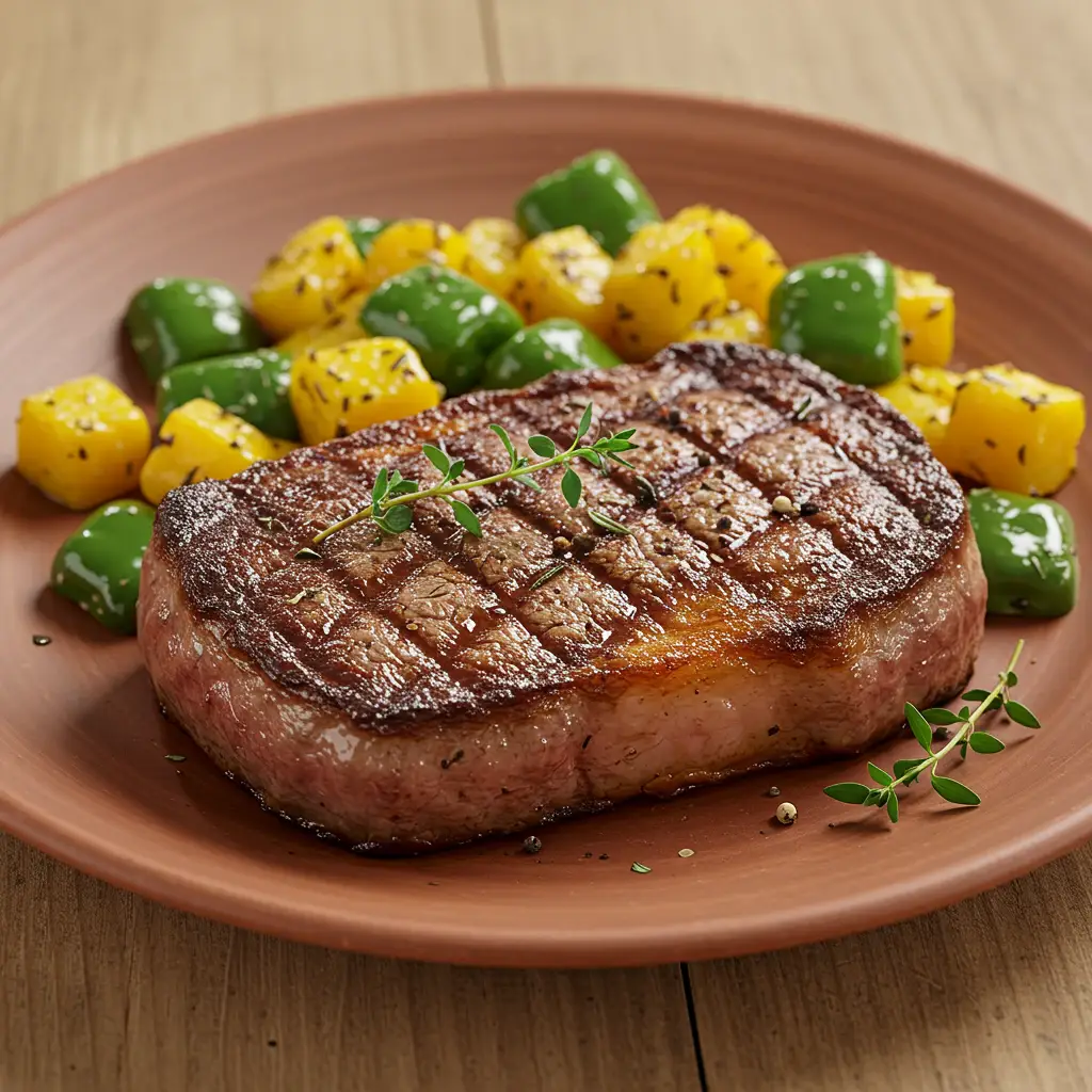 Um suculento filé mignon grelhado, envolto em um saboroso refogado de legumes e ervas frescas, com toque brasileiro. Uma explosão de sabores que agrada a todos os paladares.