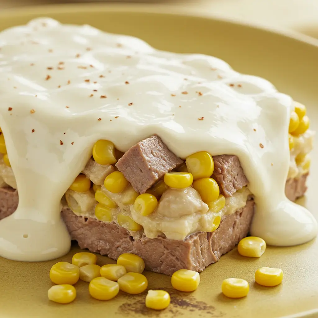 Em um refratário médio (aproximadamente 23x22x4 cm), faça camadas com a carne, champignon, palmito, milho e azeitonas.
