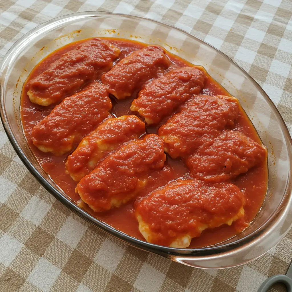 Finalize com uma leve camada de extrato de tomate e orégano.