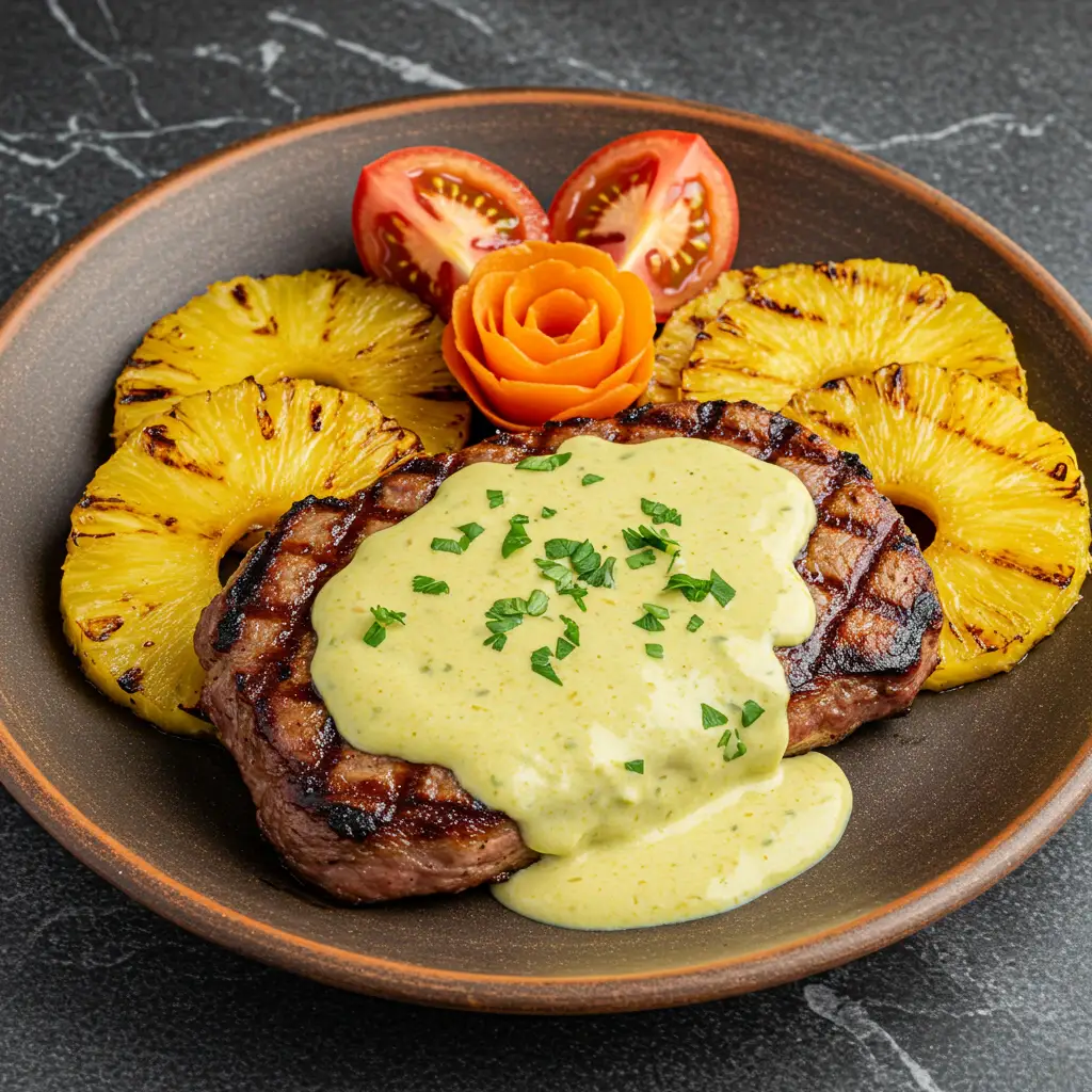 Um filé mignon suculento, grelhado e envolvido em um irresistível molho cremoso de abacaxi e requeijão. Uma explosão de sabores que harmoniza o doce do abacaxi com o salgado da carne. Delicioso e fácil de preparar!