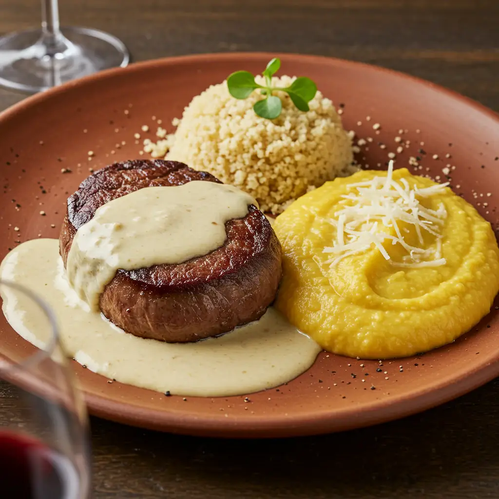 Filé Mignon ao Molho de Café com Purê de Mandioquinha
