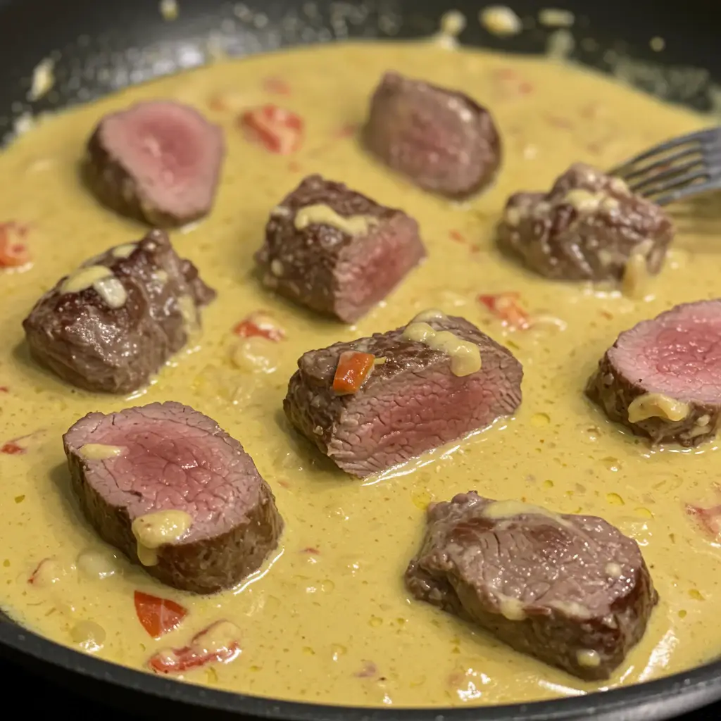 Retorne os bifes à frigideira e deixe ferver por mais 2 minutos, para que absorvam o sabor do molho.