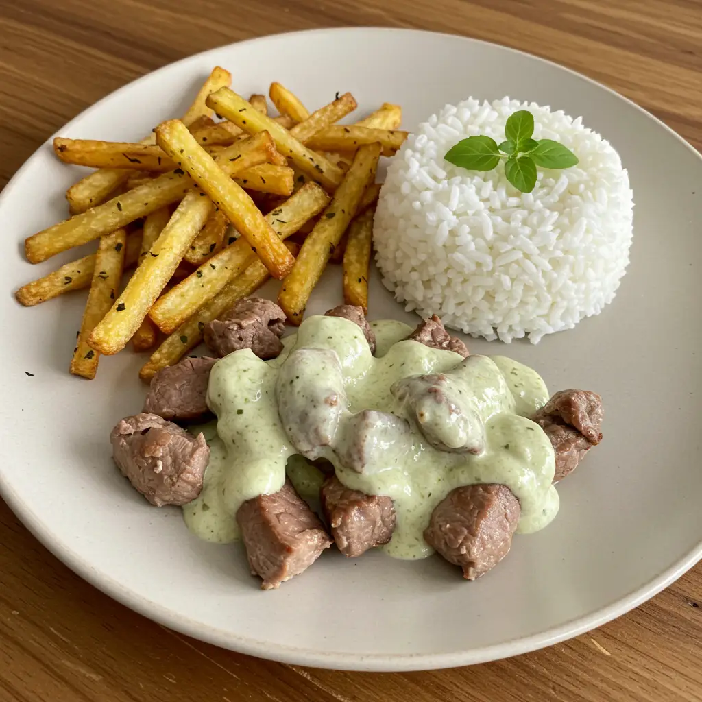 Um filé mignon suculento coberto por um cremoso molho de quatro queijos: gorgonzola, mussarela, parmesão e requeijão. Uma explosão de sabor que combina perfeitamente com arroz branco e batata palha.