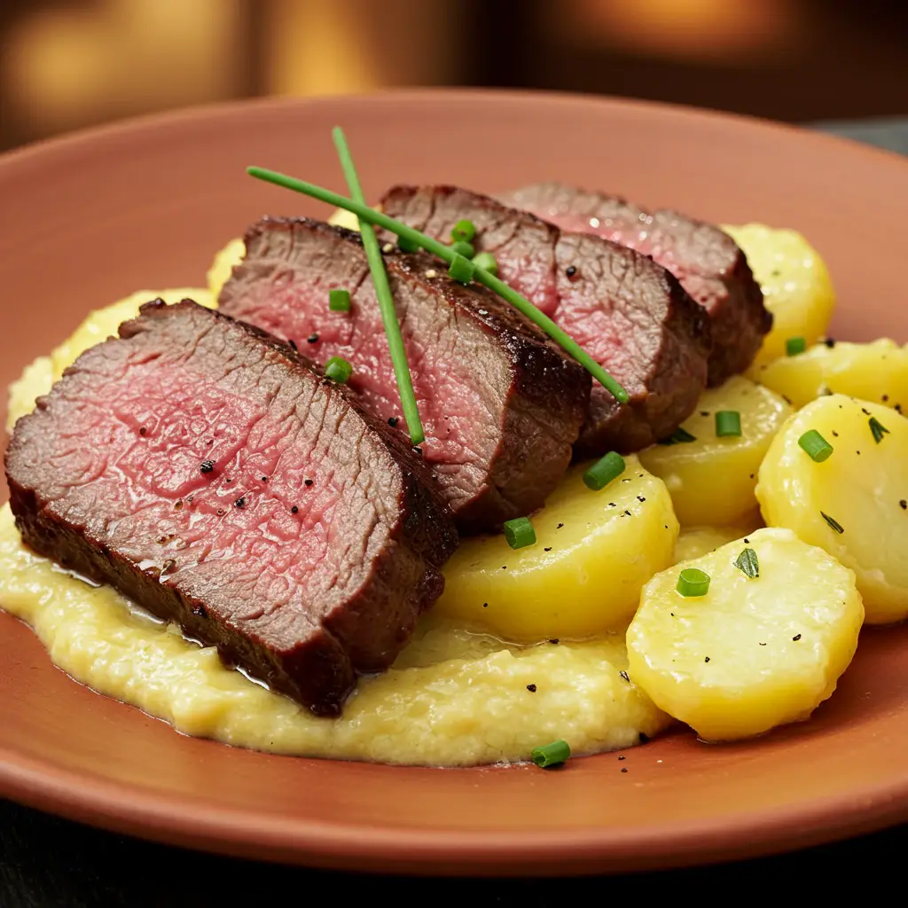 Filé Mignon Crocante com Especiarias e Batatas ao Molho Dijon