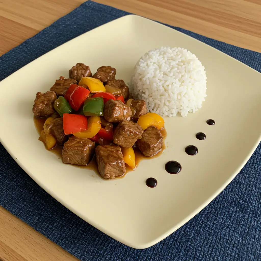 Um prato sofisticado e saboroso que equilibra o sabor levemente adocicado da maçã caramelizada com o toque defumado do filé mignon de porco. A combinação de pimentões e shoyu garante um toque especial de sabor oriental.