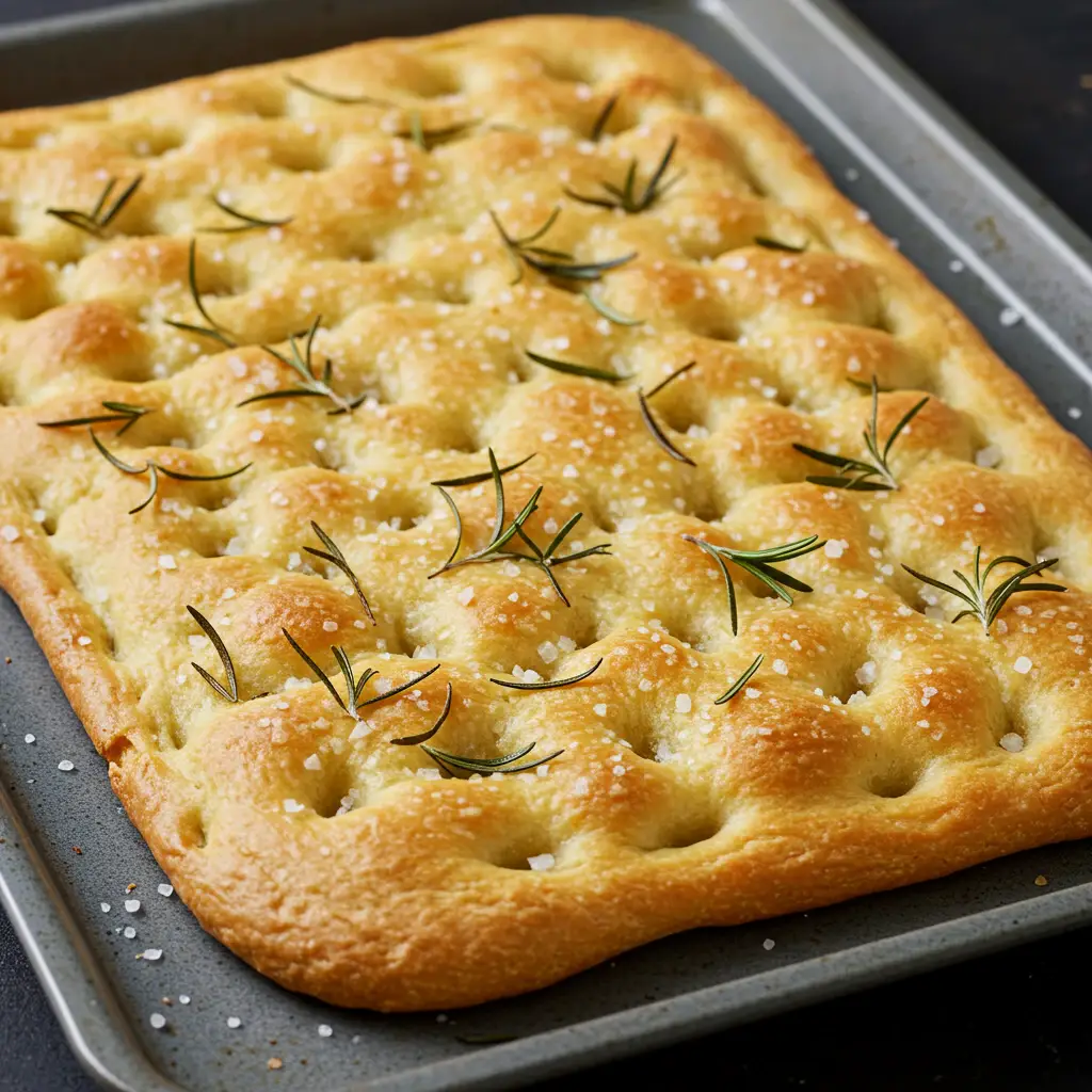 Uma focaccia caseira irresistível! Perfumada com alecrim e tomate seco, crocante por fora e macia por dentro. Ideal para acompanhar aperitivos ou um bom vinho.