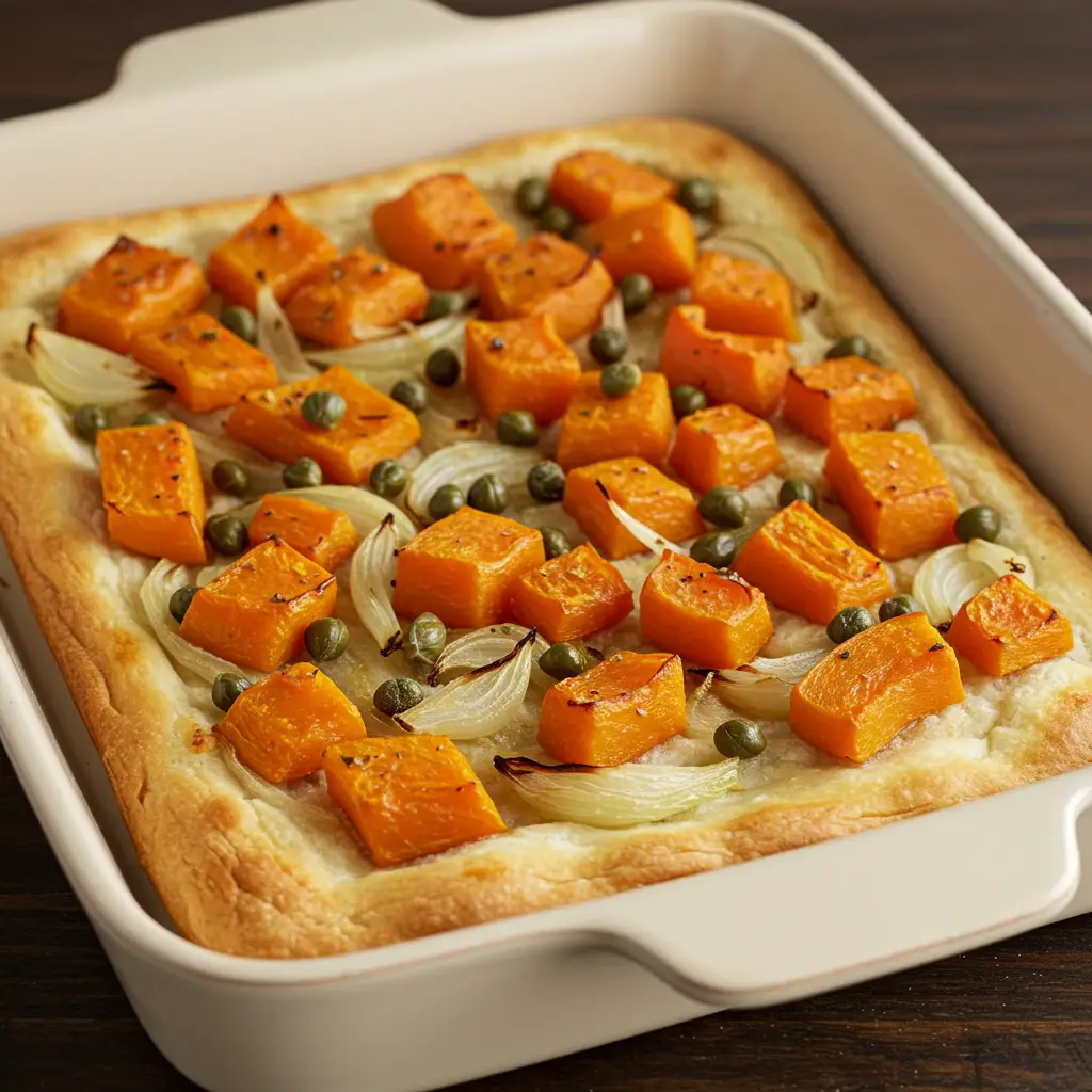 Uma focaccia caseira e saborosa, com a combinação perfeita de abóbora assada, cebola caramelizada e o toque salgado das alcaparras. Uma receita integral que agrada a todos os paladares.