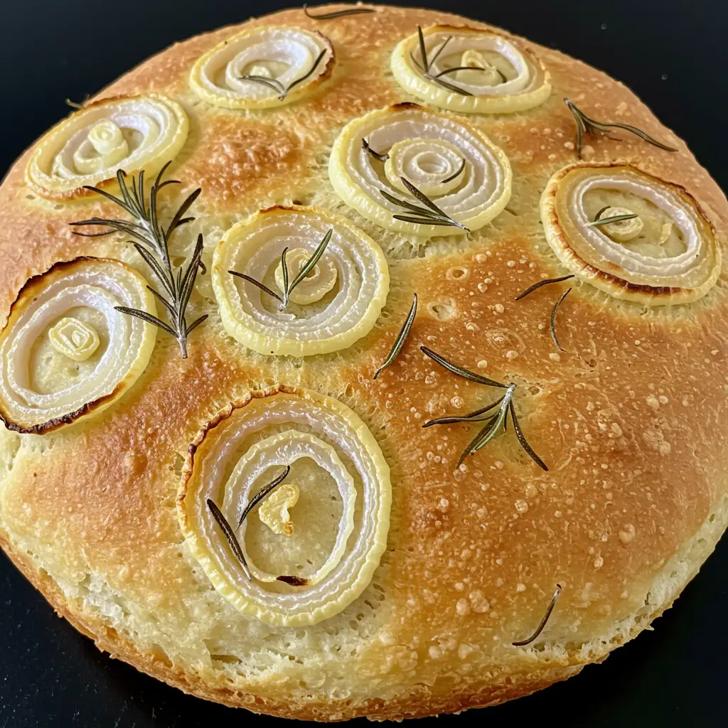 Delicie-se com esta focaccia leve, aromática e cheia de sabor, feita com alecrim fresco e cebola caramelizada. Ideal para acompanhar uma boa refeição ou servir como petisco.