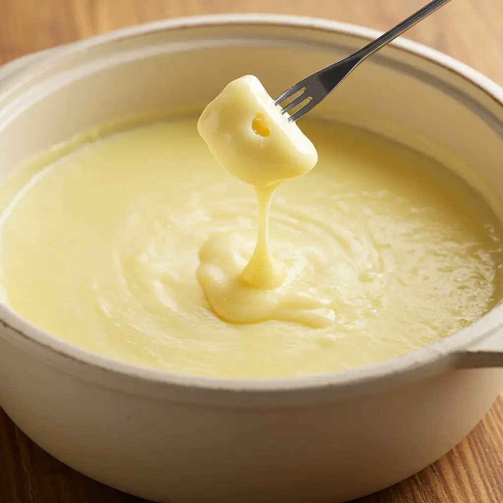 Um fondue de queijo irresistível! Gruyère e Emmental derretidos com conhaque, criando uma experiência gastronômica inesquecível. Perfeito para um jantar romântico ou encontro entre amigos.
