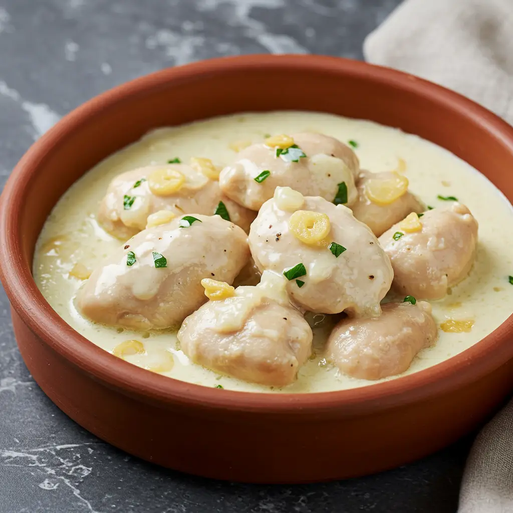 Peito de frango suculento, cozido em um cremoso molho de leite, alho e pimenta verde, finalizado com um toque refrescante de limão. Uma receita simples e deliciosa para o dia a dia!