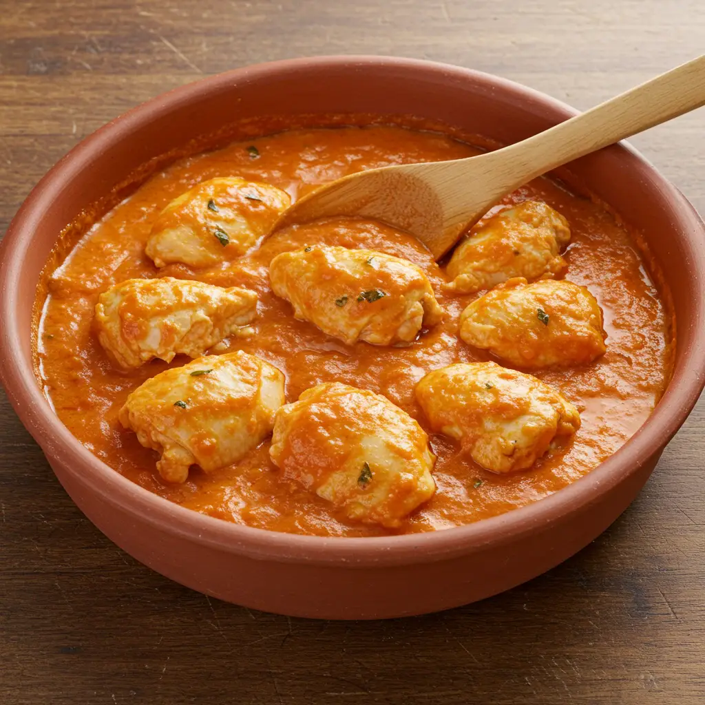 Um frango suculento, cozido em um molho de tomate cremoso e saboroso, com toque de acidez e um leve picante. Perfeito para um jantar em família ou um almoço especial.
