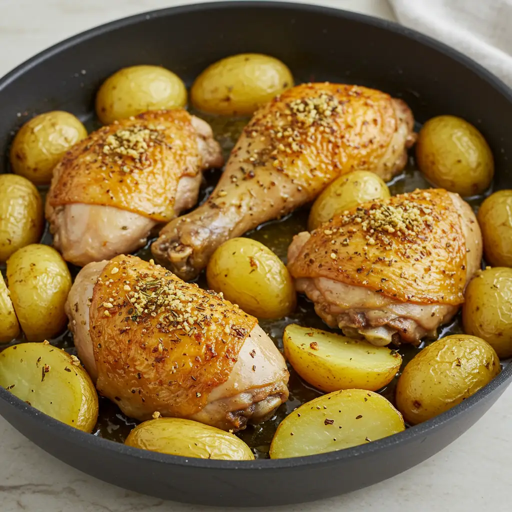 Um frango assado crocante e suculento, acompanhado de batatas macias e saborosas, gratinadas com queijo parmesão. Uma receita simples e deliciosa para um jantar especial!