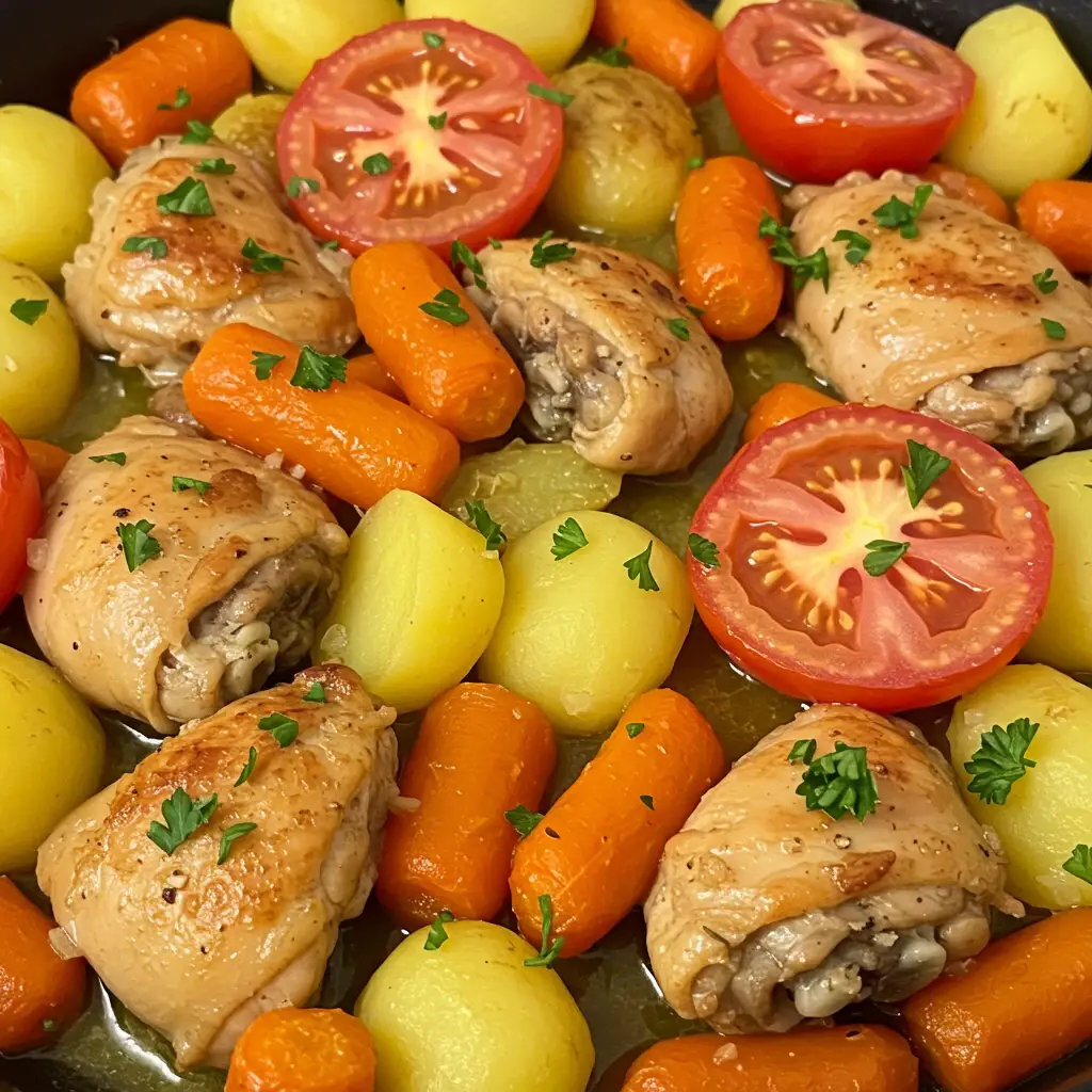 Um frango suculento e saboroso assado com batatas e cenouras, perfumado com laranja e ervas frescas. Receita simples e perfeita para um almoço ou jantar em família. Ideal para um dia a dia prático e saboroso.