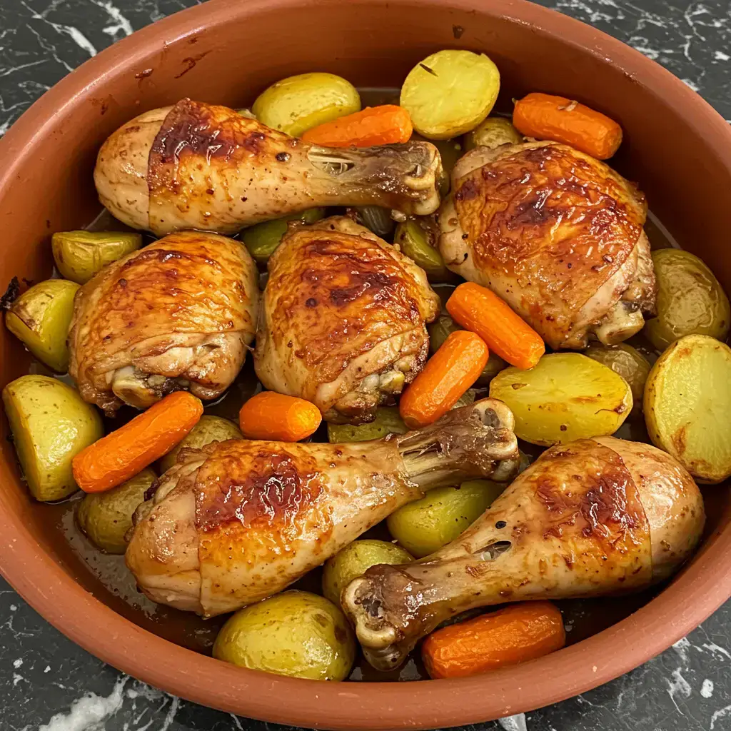 Um clássico da culinária brasileira, saboroso e fácil de preparar. Frango suculento assado com batatas e cenouras macias, temperado a seu gosto. Uma refeição completa e deliciosa para o dia a dia.
