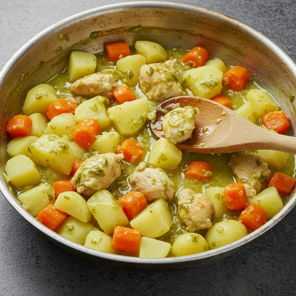 Um prato simples e saboroso, perfeito para o dia a dia. Frango macio e suculento, acompanhado de batatas e cenouras cozidas no próprio caldo, temperado com ervas finas. Uma refeição completa e nutritiva!