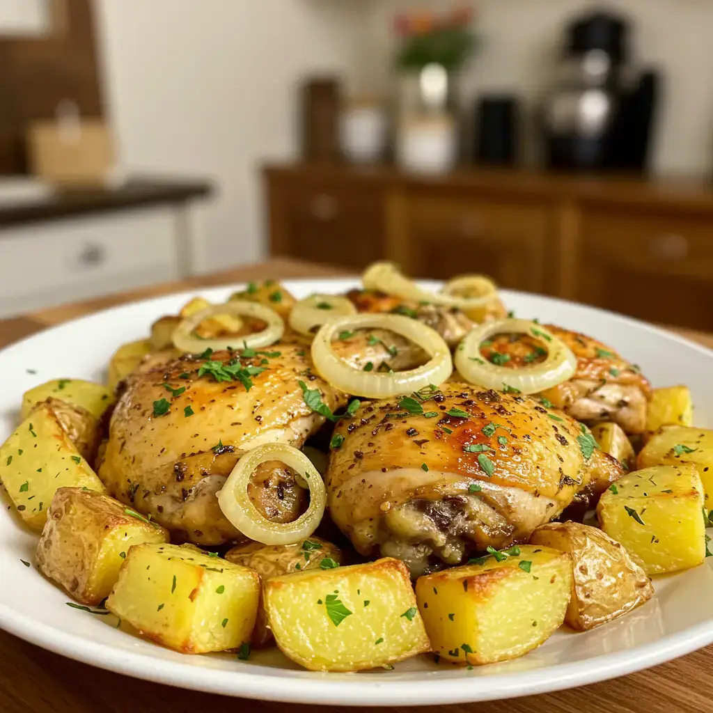 Delicioso frango assado com batatas, perfeito para um almoço em família. A combinação de temperos e o toque do forno tornam este prato irresistível!