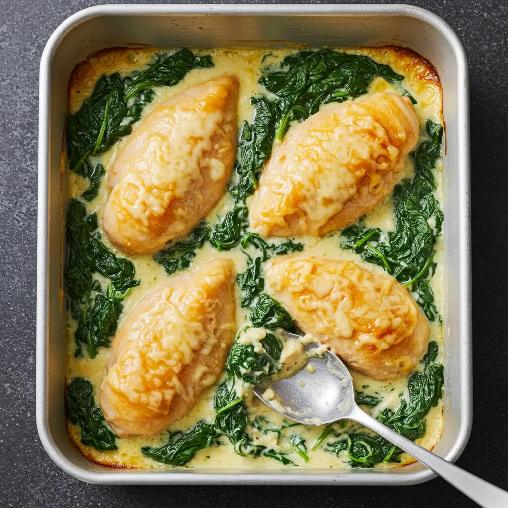 Peito de frango grelhado, suculento, envolto em um cremoso molho de espinafre. Prato leve, saboroso e rápido de preparar! Ideal para um jantar prático e delicioso.