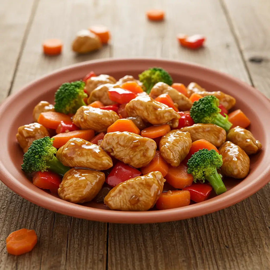 Um prato rápido e saboroso, perfeito para o dia a dia. Frango macio e suculento, envolto em um delicioso molho de soja, acompanhado de cenoura crocante. Uma opção leve e nutritiva!