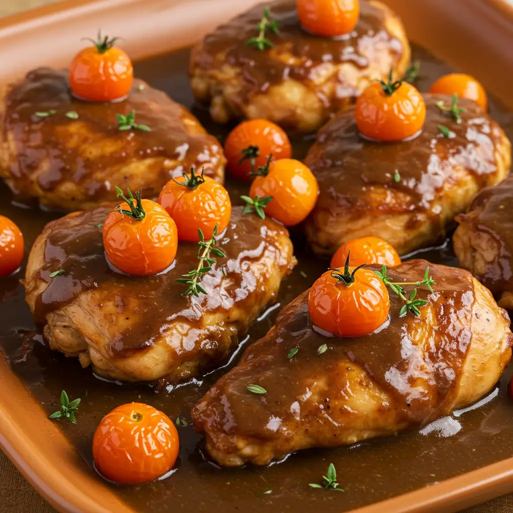 Sobrecoxas de frango suculentas em um molho cremoso e saboroso de cerveja escura e creme de cebola. Uma receita simples e deliciosa, perfeita para um jantar em família.