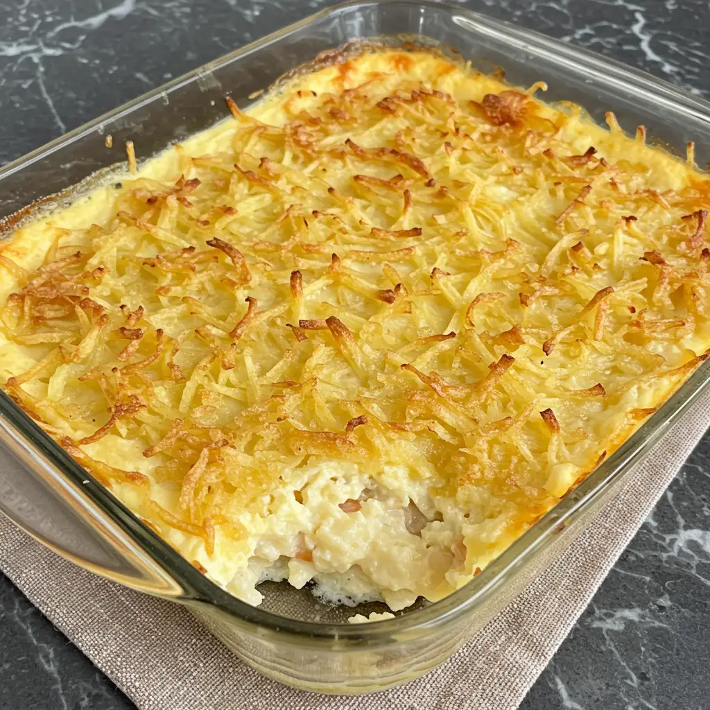 Um prato cremoso e saboroso, com o sabor suave do creme de cebola e a crocância da batata palha. Perfeito para um jantar rápido e delicioso! Ideal para um dia a dia prático e saboroso.