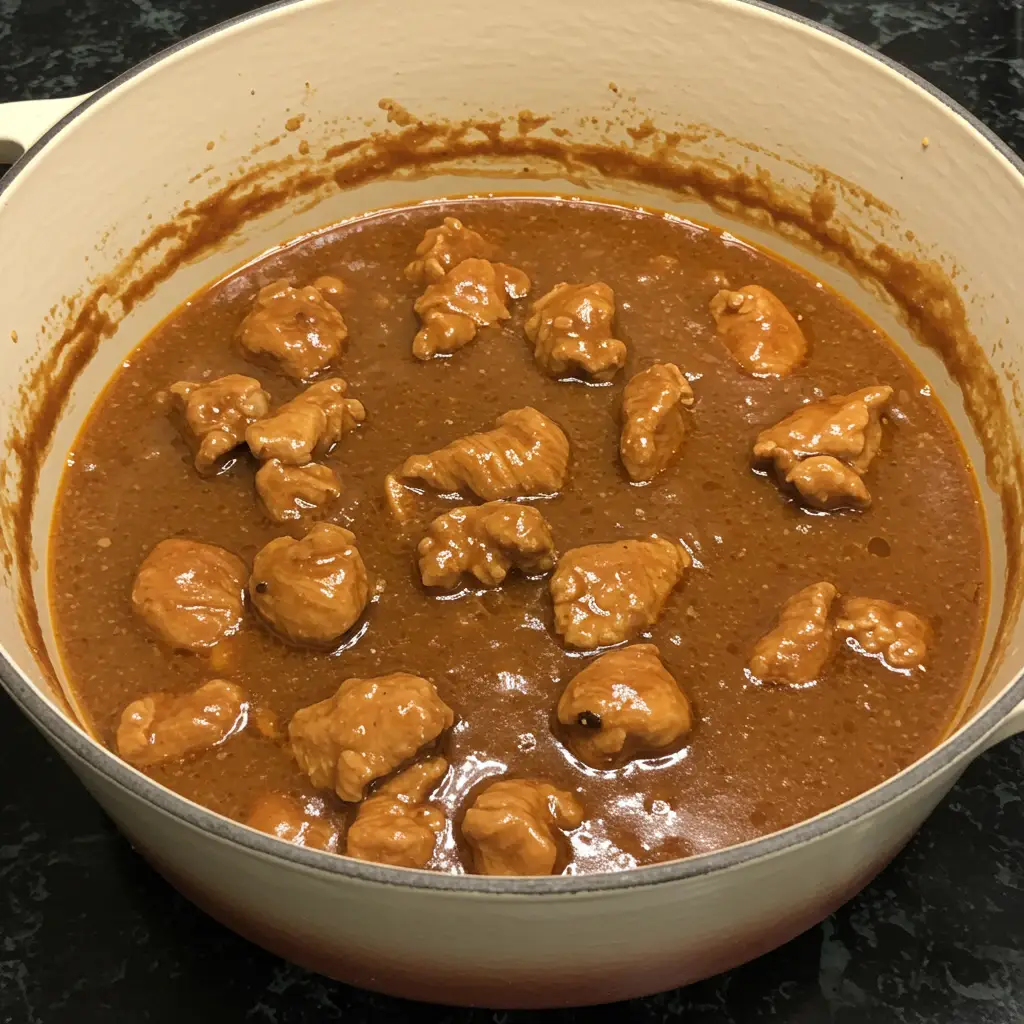 Cozinhe em fogo médio, adicionando água aos poucos se necessário, até o frango estar cozido e macio (aproximadamente 30 minutos).