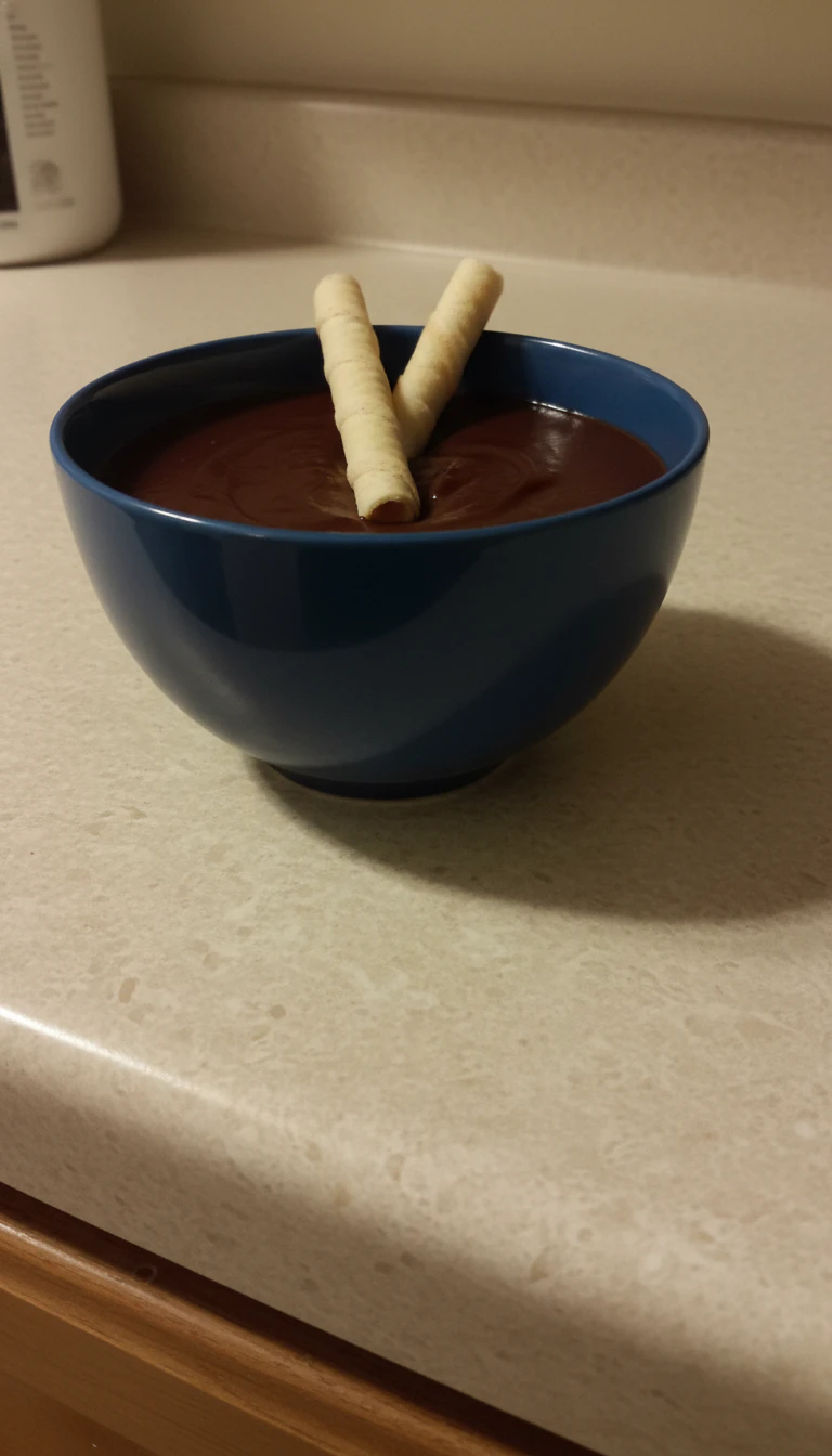 Em uma panela, misture 3 colheres (sopa) de amido de milho com 2 xícaras (chá) de leite desnatado e o chocolate em pó. Leve ao fogo médio, mexendo sem parar, até engrossar (cerca de 5 minutos). Retire do fogo e deixe amornar.