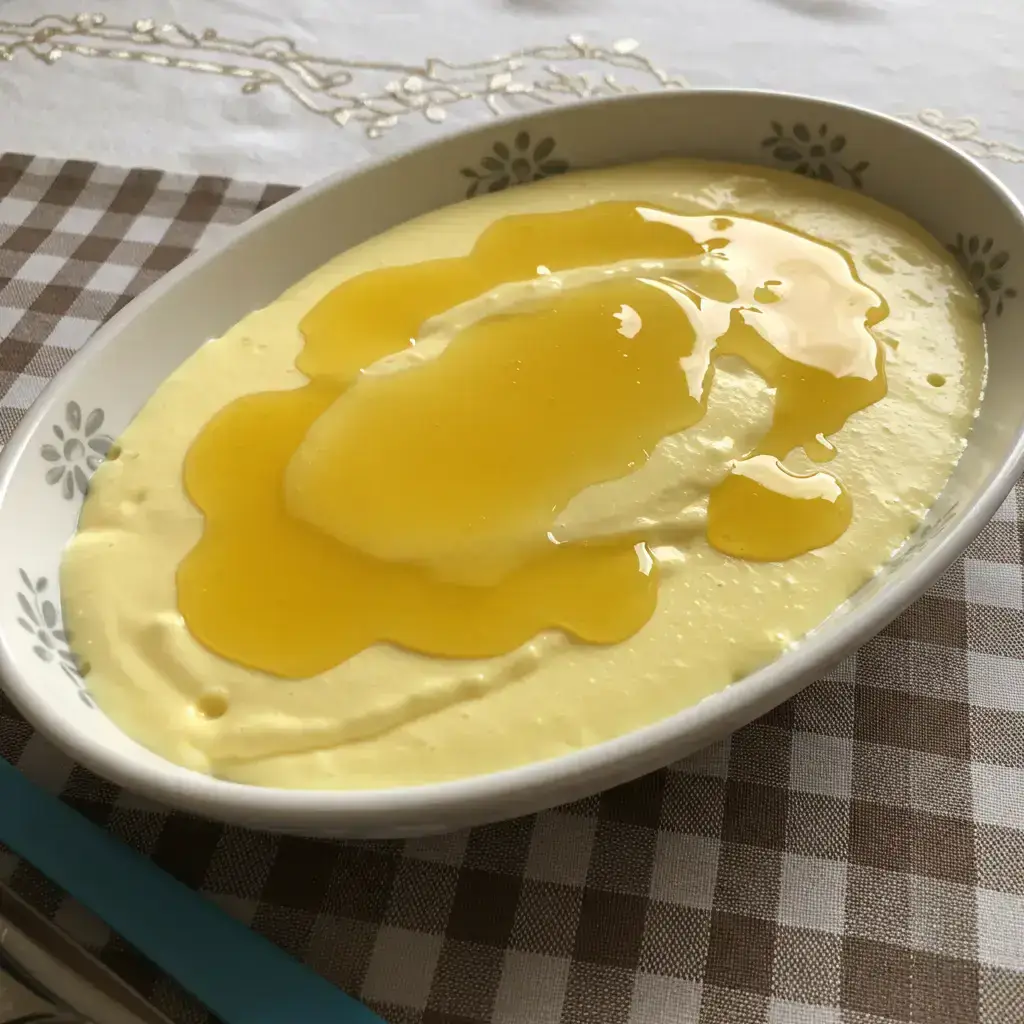 Em um refratário, coloque o abacaxi cozido, espalhe a gelatina dissolvida por cima e finalize com o creme batido.