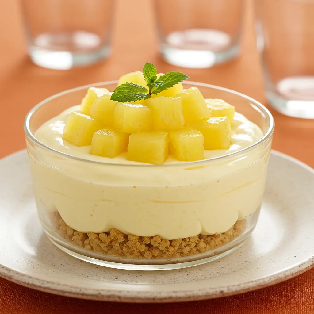 Antes de servir, pode decorar com açúcar caramelizado, raspas de abacaxi ou um fio de mel.