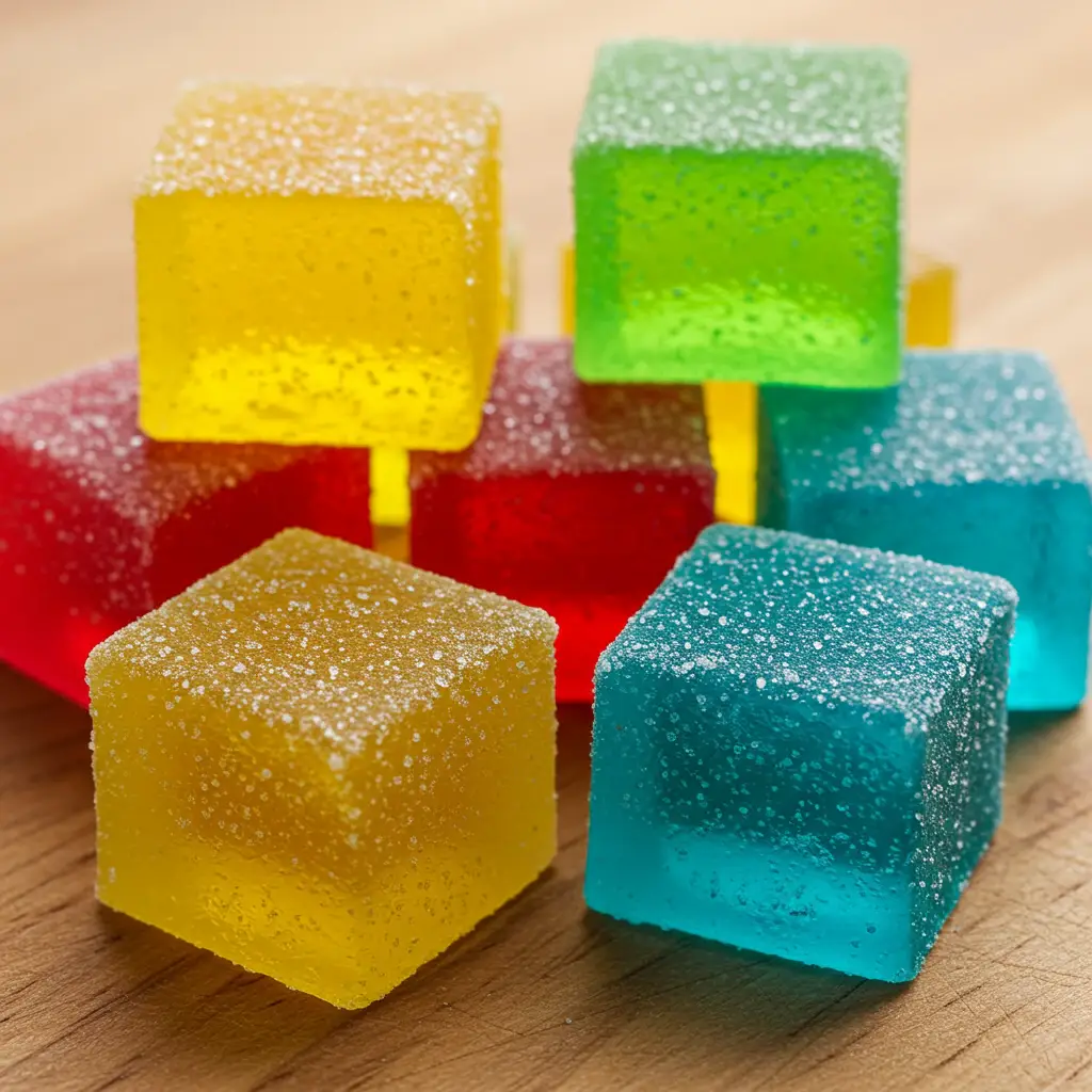 Após as gelatinas estarem firmes, corte-as em cubos pequenos.