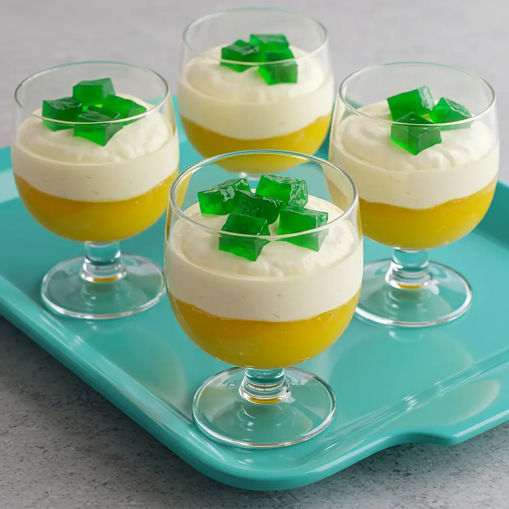 Uma sobremesa refrescante e colorida, perfeita para festas! Camadas de gelatina de limão e abacaxi combinam com uma cremosa mousse de maria-mole, criando uma explosão de sabores.