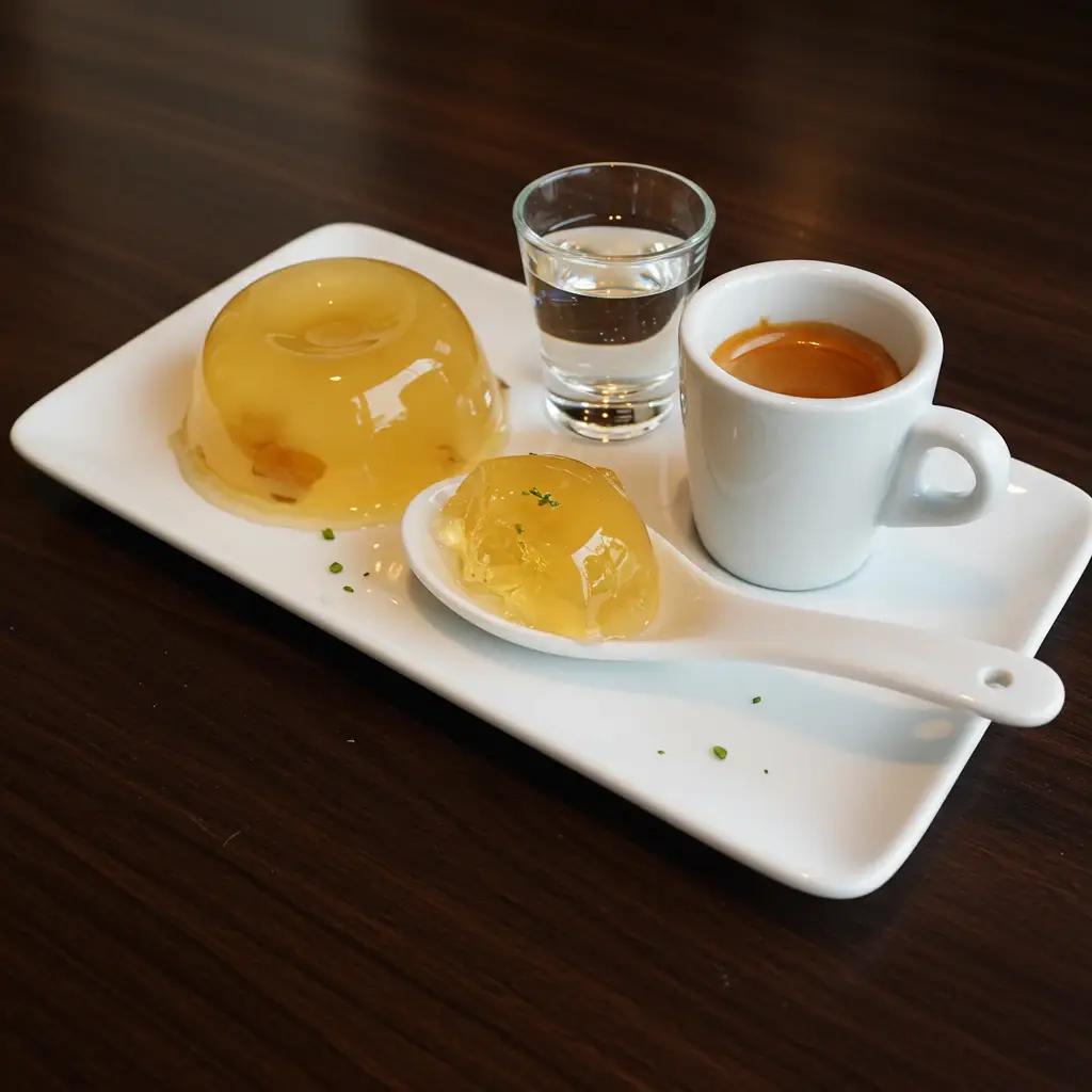 Uma sofisticada sobremesa que une a refrescância da caipirinha à cremosidade de uma gelatina. O toque final de café e raspas de limão equilibra a doçura, criando uma experiência única para o paladar.