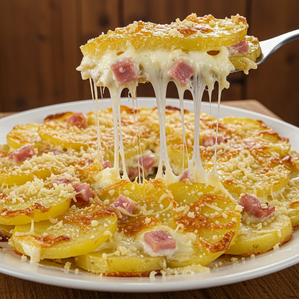 Gratinado de batata com presunto e queijo: sabor autêntico da nossa terra, receita tradicional que agrada a toda família. Um abraço no paladar, feito com ingredientes frescos e o tempero de casa.