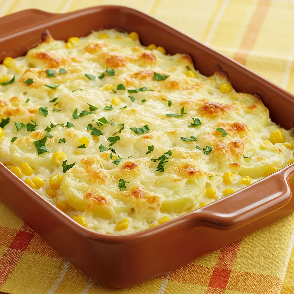 Um gratinado de batata simples e saboroso, perfeito para um jantar em família. Cremoso por dentro e gratinado por fora, com o toque especial do milho doce. Uma receita fácil e deliciosa!